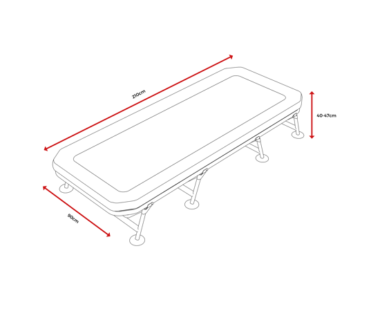 - Dimensiones: 210 x 90 x 40 cm (altura regulable hasta 47 cm)