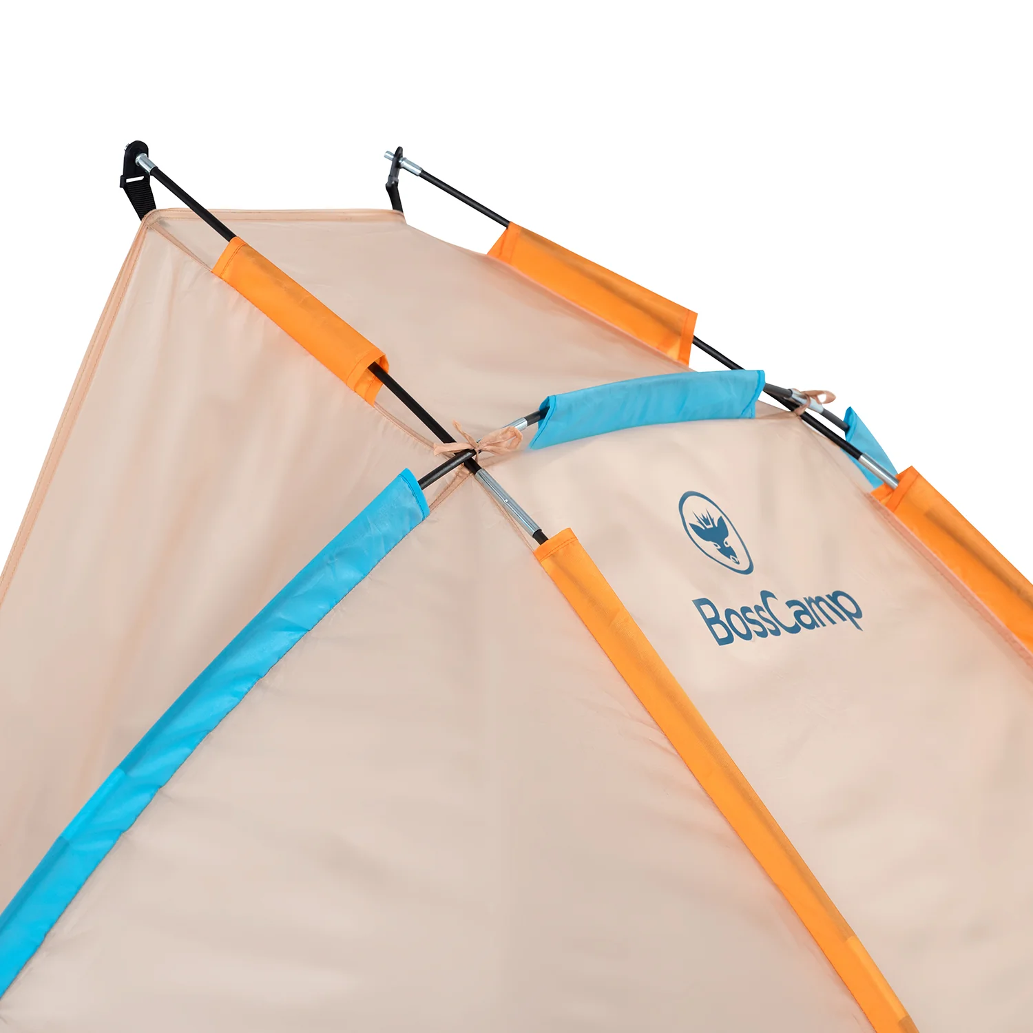 BossCamp desarrollo esta increíble Carpa de Playa / Paraviento, liviana y fácil de armar. La Carpa de playa brinda protección contra el sol (Protección solar UV 50+), y el viento. Posee ventanas de mallas laterales, para reducir la resistencia del viento y ayudar a evitar la concentración de calor del habitáculo.