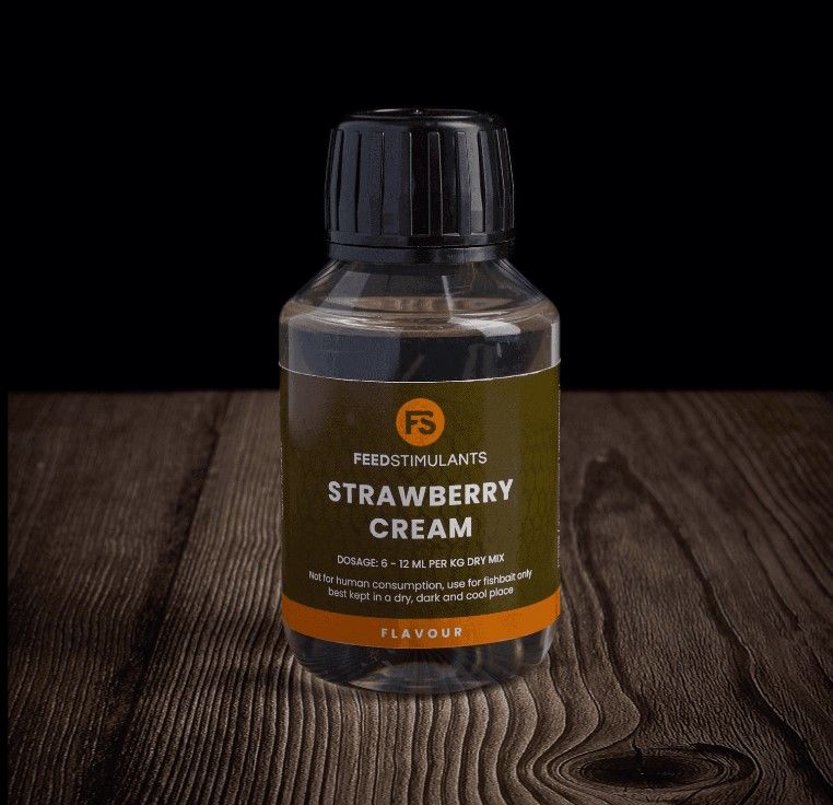 FeedStimulants Liquid Strawberry Cream Flavour Potente aroma líquido a crema de fresa, formulado sobre una base de glicol y especialmente diseñado para aumentar la atracción de las carpas. Totalmente soluble en agua, se dispersa rápidamente en el entorno, mejorando la palatabilidad de cualquier tipo de cebo. Ideal para combinar con mezclas birdfood y proteínas lácteas.