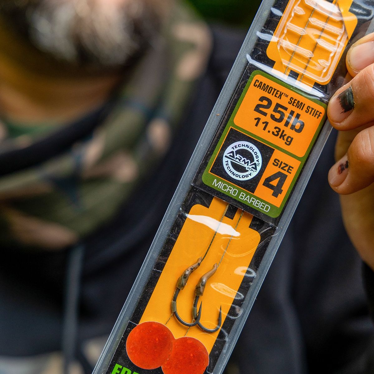 Este bajo de línea está montado con un anzuelo Arma Point Curve Short Nº4, que ofrece una penetración rápida y eficaz. Es ideal para boilies, wafters o cebos equilibrados, y mantiene una posición estable incluso tras repetidas picadas fallidas.