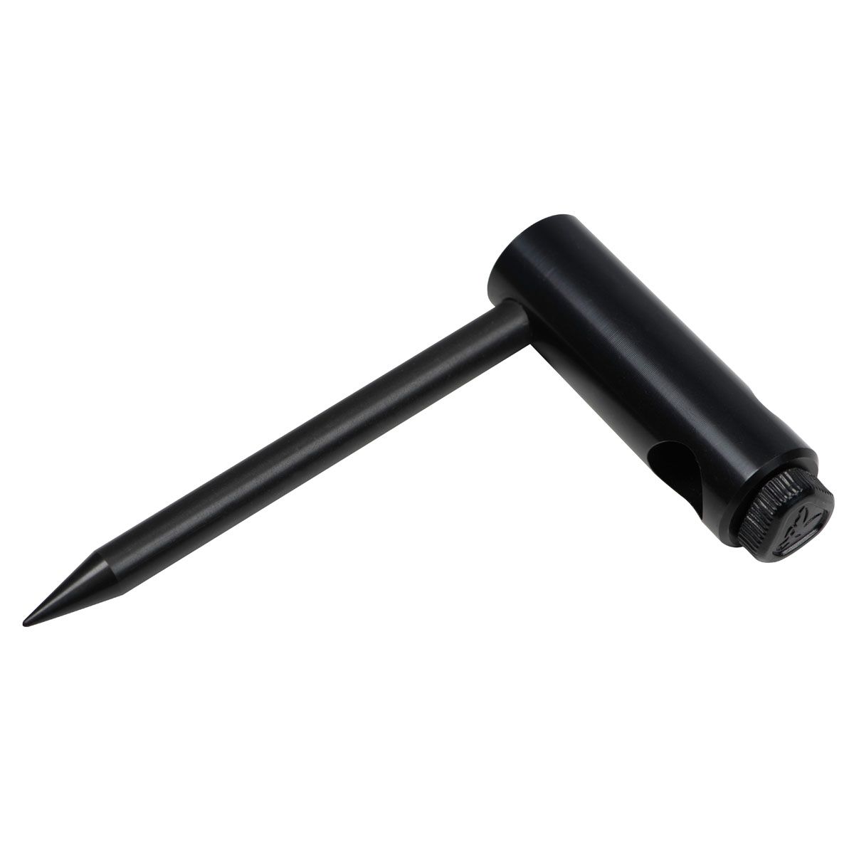 Gracias a su punta afilada, se clava fácilmente en el suelo sin necesidad de ejercer mucha presión. Una vez colocado, su tornillo de mariposa moldeado permite fijarlo firmemente al bankstick, creando un sistema de anclaje robusto y fiable.