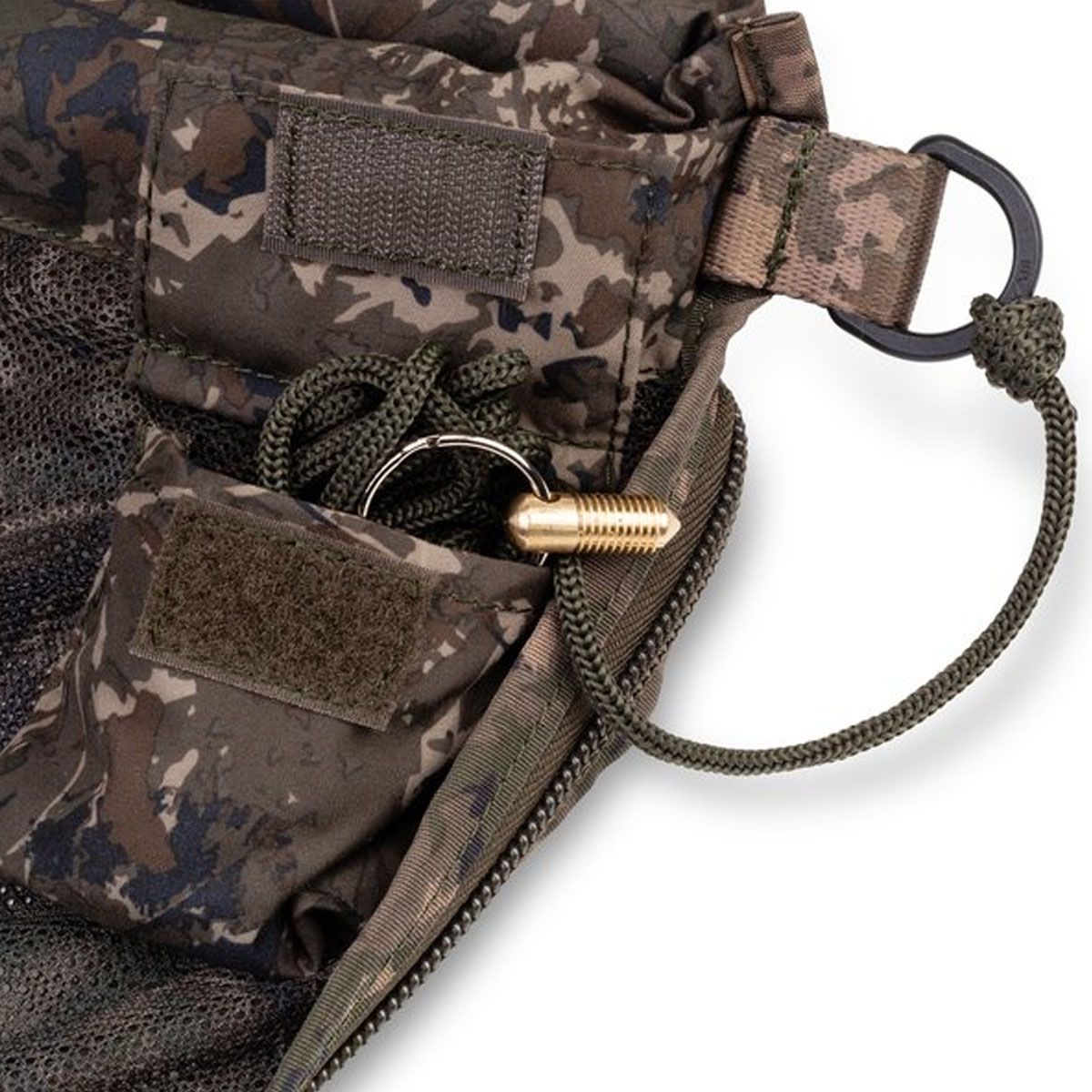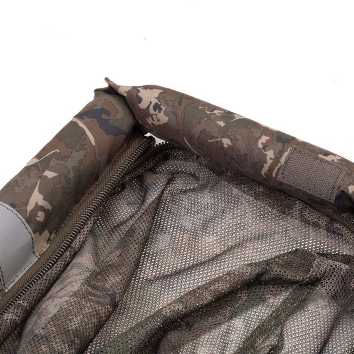 Fabricado con malla camuflada Nash de flujo libre, ideal para mantener el agua circulando y reducir el estrés del pez.