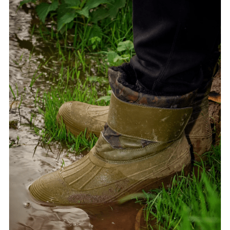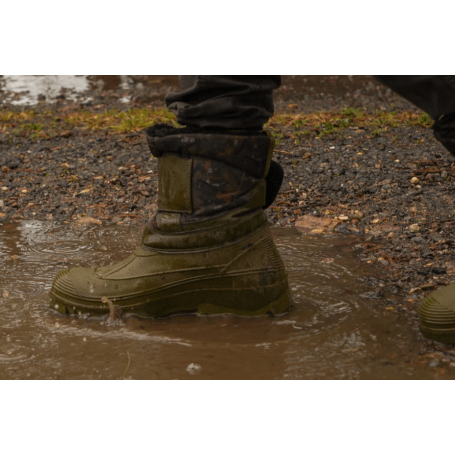 La parte superior combina el acabado Splash Camo con tonos marrón terroso y verde boscoso en la zona inferior de la bota. Este diseño no solo resulta atractivo, sino que también se integra perfectamente en entornos naturales, siendo ideal para la pesca, la caza o cualquier actividad al aire libre.