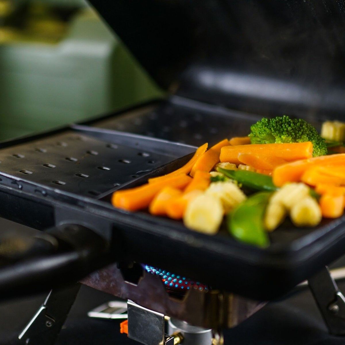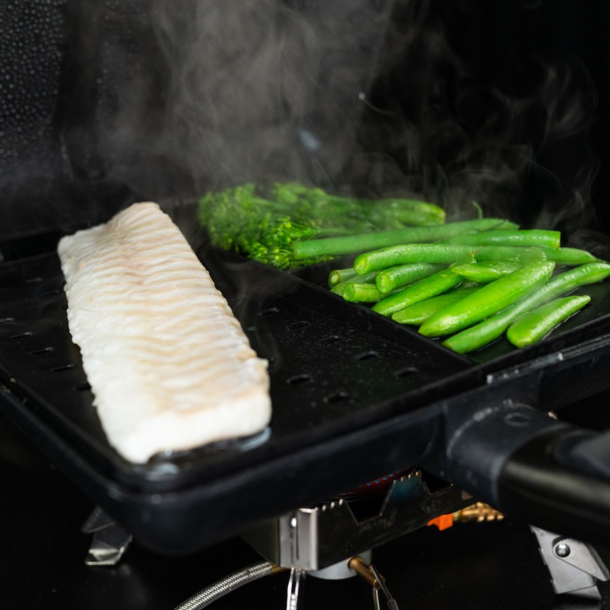 Gracias a su diseño de una sola pieza con tres compartimentos, podrás preparar distintos alimentos al mismo tiempo, sin mezclar sabores ni aromas. Ya sea que cocines verduras frescas, pescado o guarniciones, esta rejilla te permite mantener una dieta equilibrada y ligera, algo que muchos pescadores valoran especialmente en sesiones prolongadas.