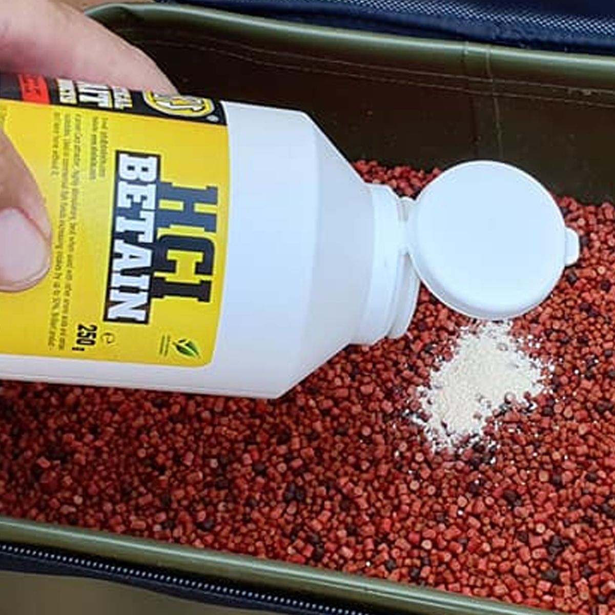 El SBS HCl Betain es un aditivo en polvo altamente estimulante que ejerce un efecto notable en el comportamiento alimenticio de las carpas. Este compuesto es uno de los estimuladores del apetito más reconocidos y utilizados en la pesca deportiva a nivel mundial. Su acción está respaldada por décadas de uso en el sector de la acuicultura, donde ha demostrado aumentar de forma significativa la ingesta de alimento en distintas especies.