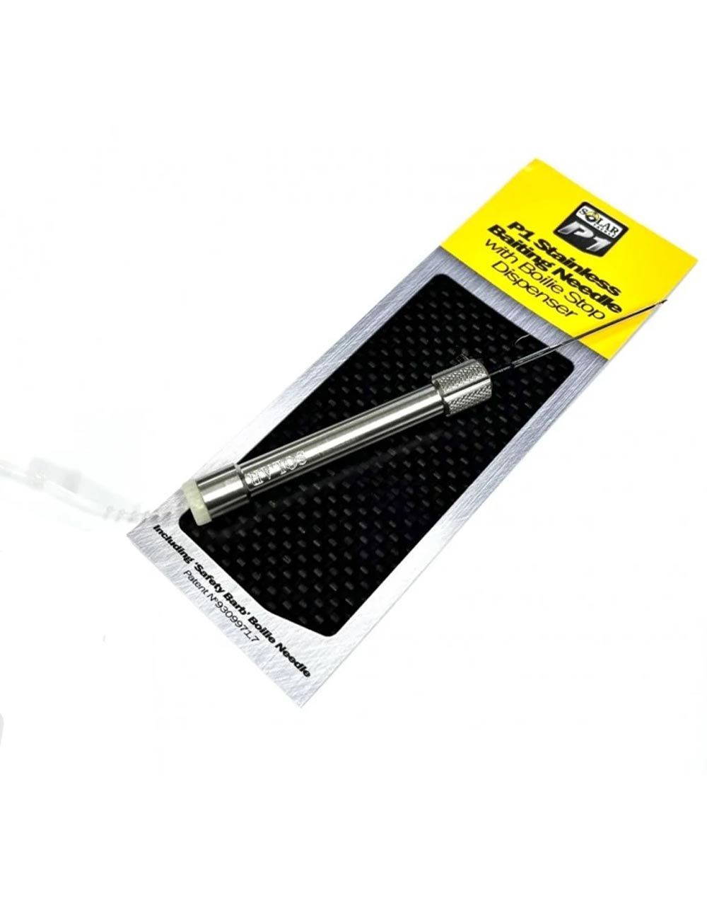 La herramienta incluye una aguja estándar para boilies con púa de seguridad, ideal para montar cebos de forma rápida y precisa. Además, es compatible con toda la gama de agujas y accesorios Solar, que incluyen: