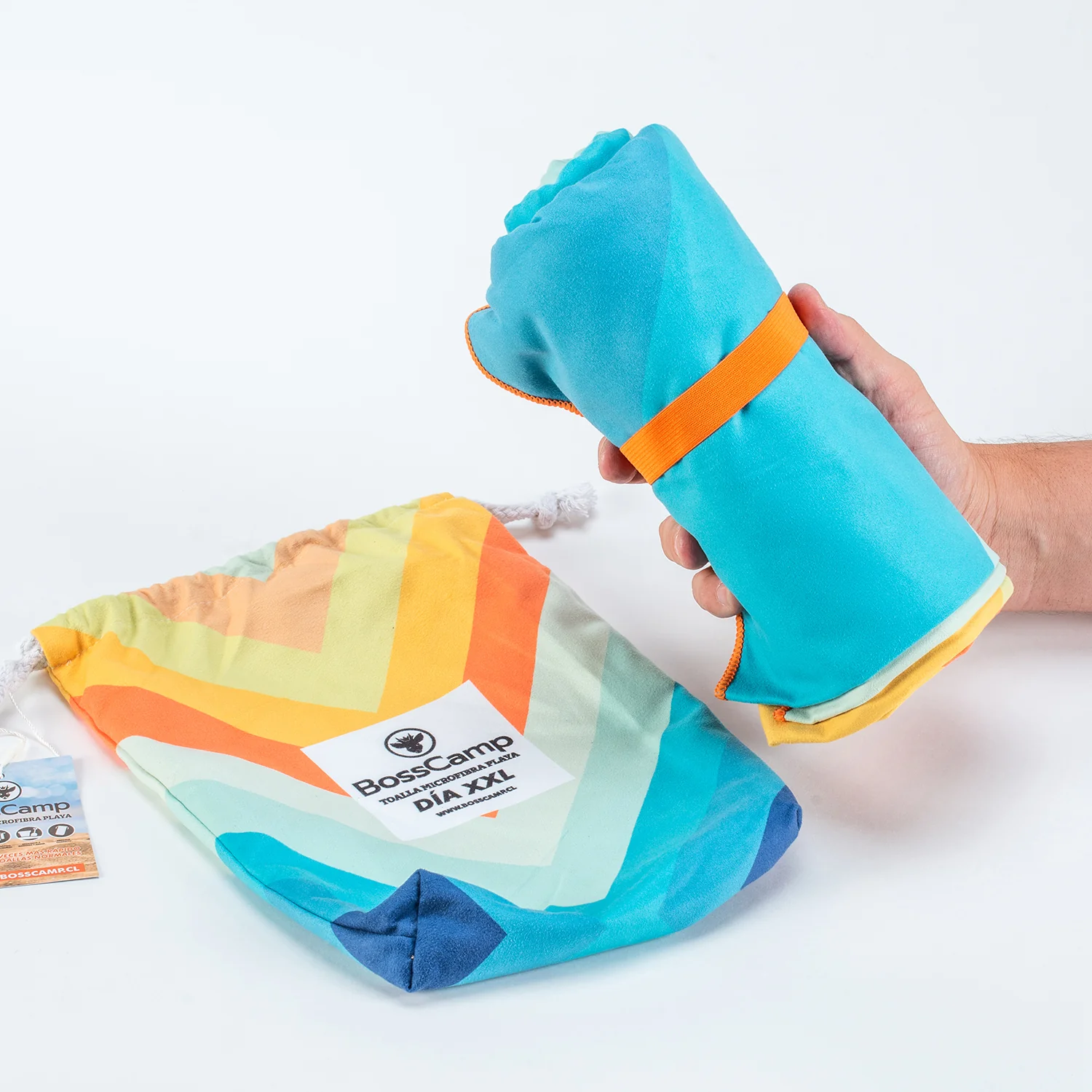 Toalla de Playa de Microfibra XXL Día Bosscamp – Secado Rápido y Multiversátil.
